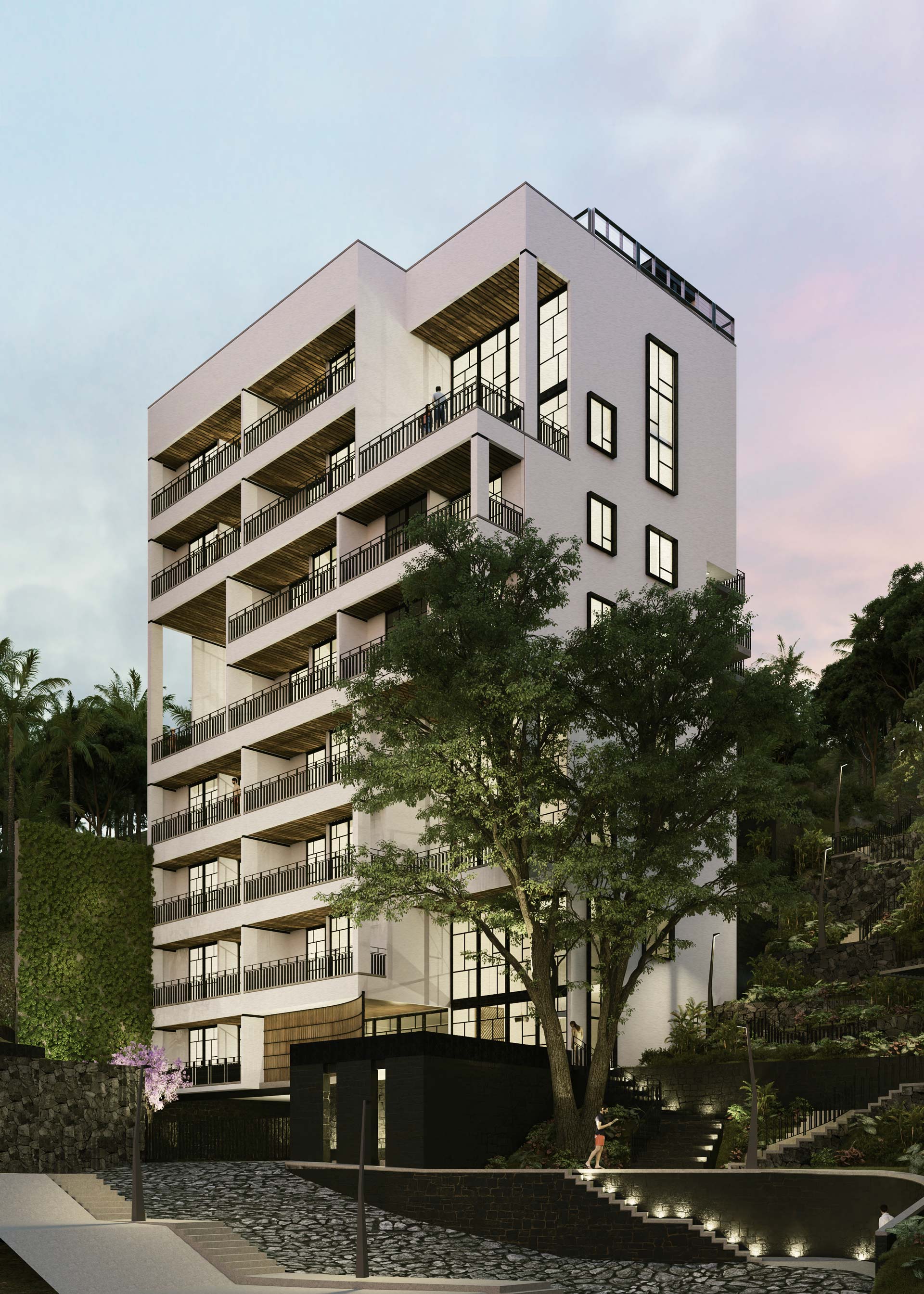The Palm and The Tree conforman una amistosa pareja que acompanará amablemente la íntima estancia de los habitantes de la torre, volviéndola una evocación de días imborrables.