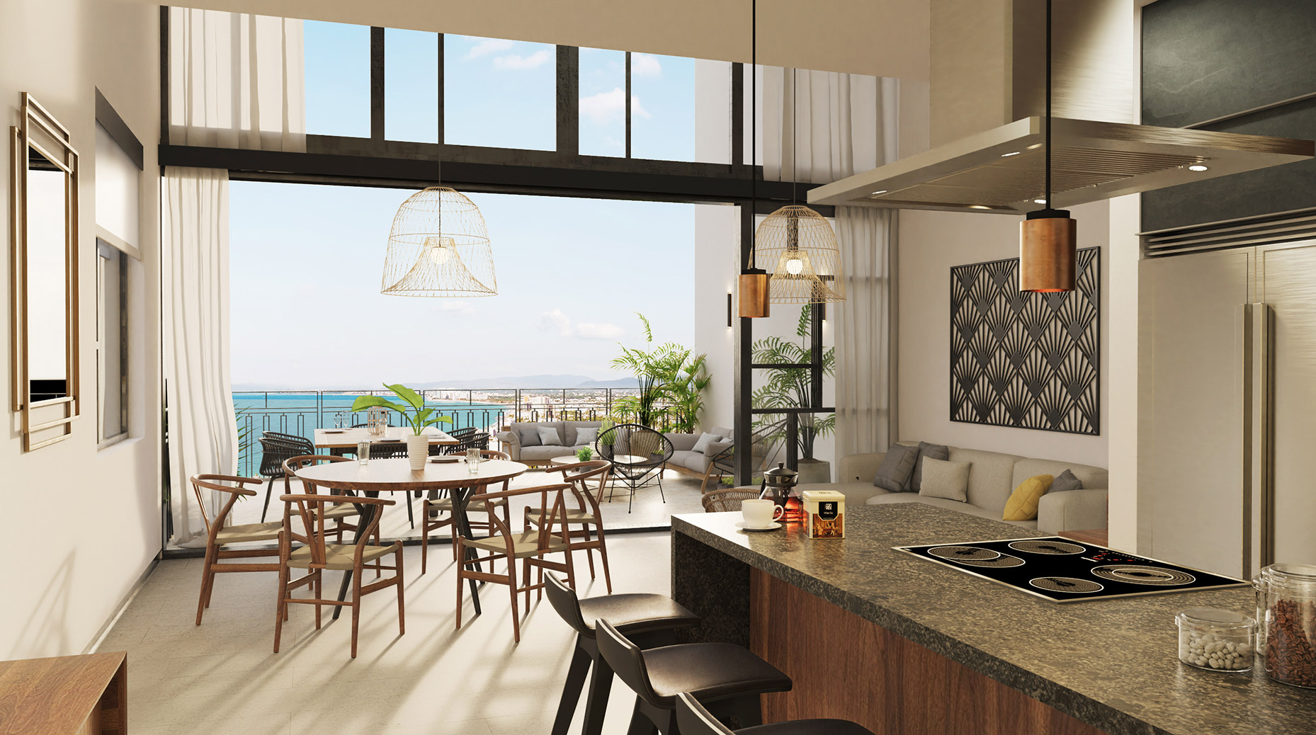 Entornos habitacionales boutique de lujo en playa.