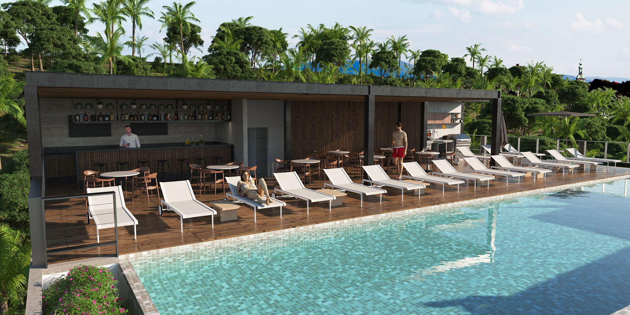 Rooftop c/alberca climatizada, área de grill, skbar y asoleaderos)